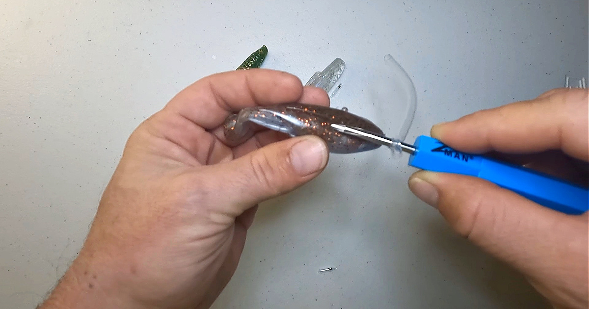 Insert the Rattle-Snaker tool into the lure and twist off the back end of the tool.