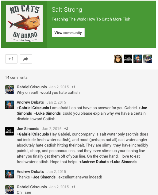 Once we had the Salt Strong website up and running on Jan 1st (2015), we subsequently created a Google+ community for our audience that enjoys communicating via Google+ (you can join instantly here).