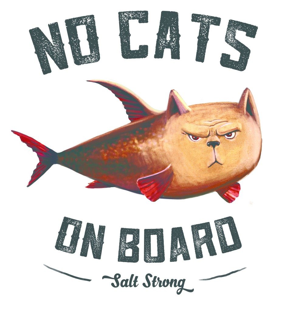 So much so that I when Luke and I started Salt Strong, we had our designer draft up a few different designs for a “No Cats On Board” t-shirt that would have a big red cross going through a catfish (see image above)