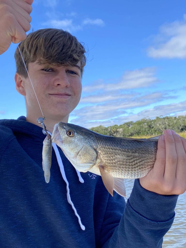 My son’s coach was able to catch a nice 28-inch redfish, his son caught his first redfish, and my son even got a 30-inch fish to show them how it’s done on his home playing field!